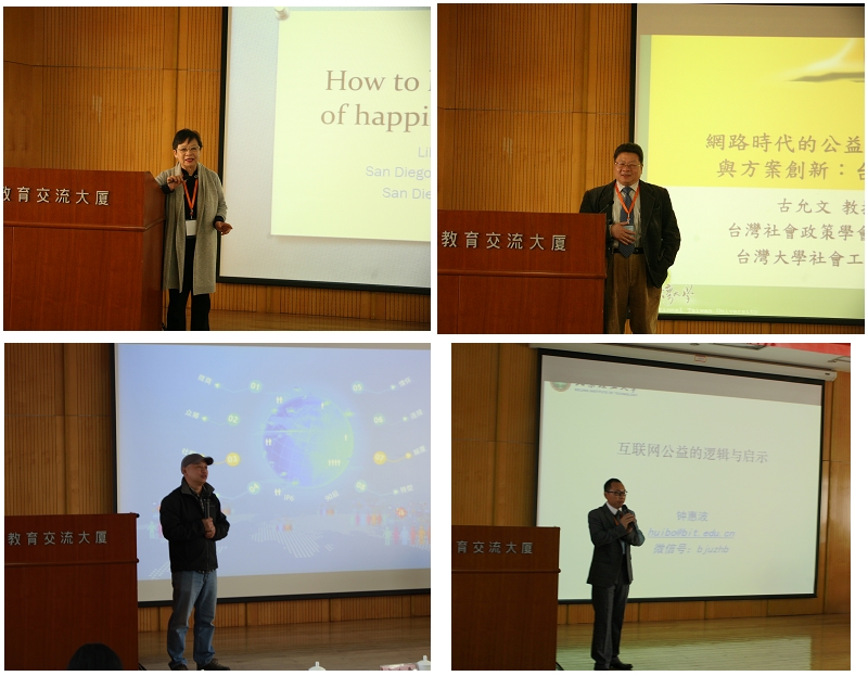 在为期两天的会议中,与会代表围绕“快乐公益与公益组织创新”、“移动互联网时代的社区公益创新”、“移动互联网时代的公益众募”、“移动互联网与公益组织管理”、“公益大数据”和“移动互联网与公益创业”六个专题分别展开了报告和研讨。Jullian Chow教授、Lirong Cheng教授、王春光教授、古允文教授、陈锦棠教授、陈友华教授、萧琮琦博士、张华平主任、钟惠波老师等专家学者针对上述主题做了精彩演讲。人文学院社会工作系刘颖老师主持了专家讨论,并做出点评。