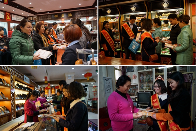 “送法进企业、送法进家庭”,志愿者们跟随大栅栏街道的工作人员走进天福茗茶、步瀛斋和祥义号等老字号企业,在感受大栅栏街道老字号企业文化的同时,为企业发放了3•15普法宣传手册,并与企业员工探讨有关消费者权益保护的热点问题。