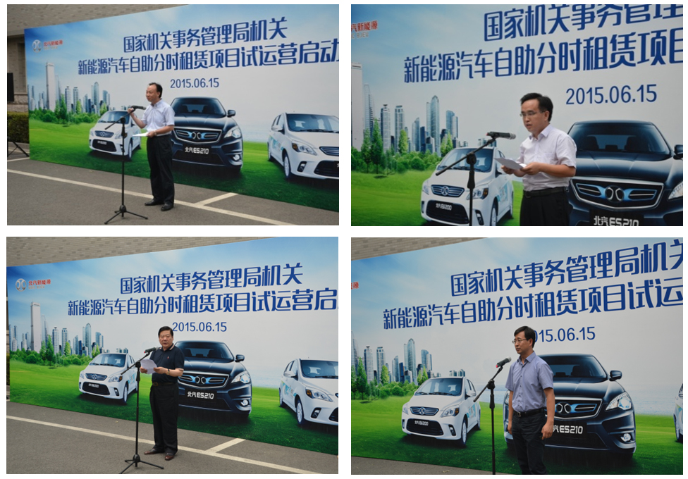 为推进政府机关使用新能源汽车,全面贯彻落实中央国家机关公务车改革要求,6月15日,“国家机关事务管理局机关新能源汽车自助分时租赁项目”启动仪式召开现场会,国家机关事务管理局局长焦焕成出席现场会并宣布项目试运营启动。