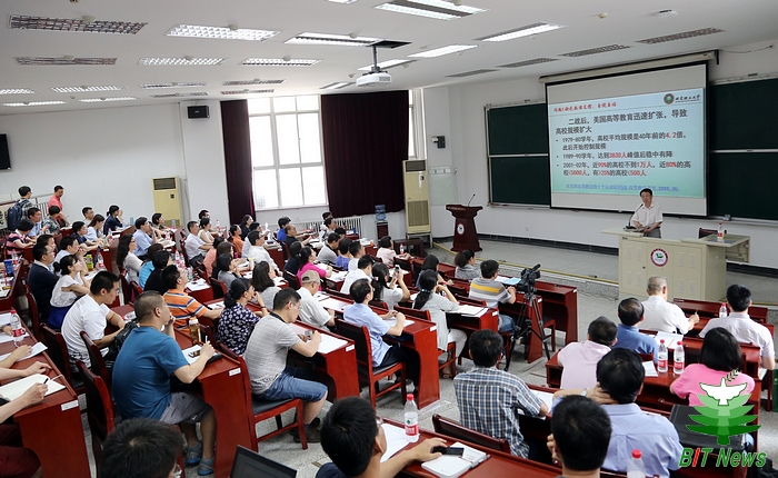 2015年6月16日下午,德赢AC米兰官网党委书记张炜在第69期青年教师岗前培训第十二讲,做了题为“中美高等教育的比较与借鉴”的讲座。本次活动是北理工教师发展第133期活动,除了新入职的青年教师,各学院、部处教职员工及离退休教职工150多人参加了本次活动。活动由教学促进与教师发展中心主任庞海芍研究员主持。