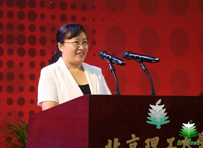 长江学者特聘教授、自动化学院王美玲代表全体教师向毕业生送上了真挚的祝福,并结合自己在北理工求学和任教的经历与大家分享了“善良”和“付出”的人生格言,勉励毕业生响应李克强总理“大众创业、万众创新”的号召,抓住机遇,取得更多成果。