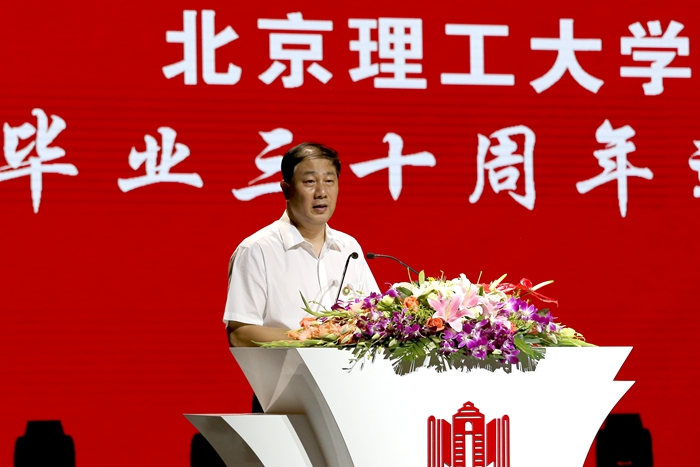 党委书记张炜代表学校致欢迎词。他首先感谢广大校友对学校发展的关心支持;感谢广大校友对国家各行业发展、地区和社会经济建设所做的贡献;感谢广大校友通过努力和拼搏,提升了北理工人的自豪感和荣誉感,为母校争得了荣誉。张炜向校友们介绍了学校十四次党代会上确定的今后五年学校发展的指导思想和发展目标、主要建设任务和措施。全校师生将以改革创新精神,编制和实施“十三五”规划,力争2020年把学校建设成为亚洲一流理工大学。张炜希望广大校友一如既往地关心和支持母校的工作,共同为建设世界一流理工大学努力奋斗!母校也将永远以校友为荣,惦记校友,关注校友,支持校友。