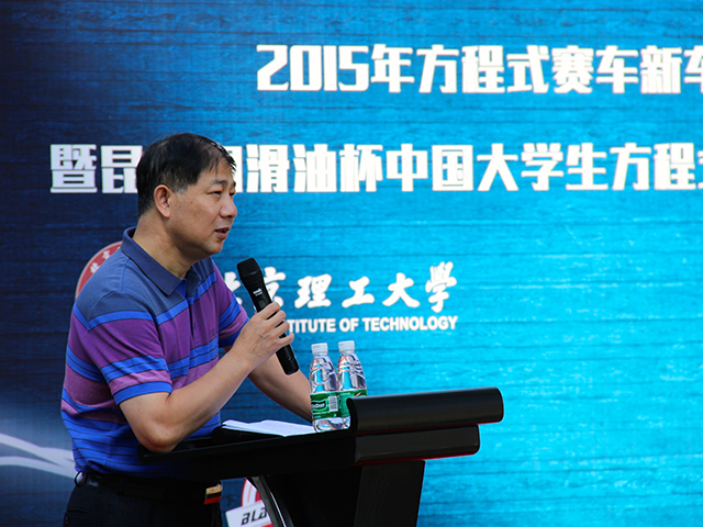 发布会上首先由机械与车辆学院常务副院长胡纪滨教授致辞,围绕“感恩”和“沉淀”两个关键词展开。“感恩”表达了对于中国汽车工程学会将方程式赛车项目引入中国高校的感谢,对北京汽车、SMC(中国)等企业连续多年为学生科技创新提供资金支持、技术与物资、管理培训指导等的感谢,以及对社会各界、特别是媒体助力宣传的致谢。“沉淀”则是要求全队牢记“激情协作、求索创新”的团队精神,继承和发扬多年来的技术优势,保持冠军车队自己的风格。