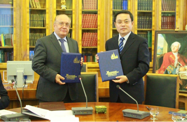。。2015年9月28日下午,胡校长一行访问莫斯科大学。莫斯科大学举行隆重仪式欢迎胡校长一行,Sadovnichy校长亲自主持仪式并发表热情洋溢的讲话。他在讲话中回顾了在两国元首见证下,莫斯科大学与北理工合作建立中俄联合大学的过程,展望这所新学校对两国和更广大区域发展做出巨大贡献的期许,同时介绍了莫斯科大学对新建学校的高度重视和后续安排。