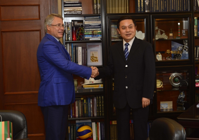 2015年9月28日上午,胡校长一行访问国立莫斯科鲍曼技术大学,Anatoly Alexandrov 校长等热情欢迎胡校长一行的访问,双方举行了卓有成效的会谈,并签署了两校全面合作协议。胡校长向 Alexandrov校长通报了我校与莫斯科大学在深圳设立联合大学的相关进展,并邀请鲍曼技术大学的教师到未来的联合大学授课和指导研究生,欢迎鲍曼技术大学的学生将来到联合大学学习。Alexandrov校长感谢胡校长的通报,他在讲话中提到鲍曼技术大学和莫斯科大学有良好的合作,这种合作为鲍曼技术大学的教师和学生参与深圳项目创造了条件。两位校长详细回顾了近五年来在学生交换、教师交流、合作研究等方面的合作,对扩大合作领域有高度一致的期待。双方同意,通过设立联合培养项目(涵盖本硕博)、建立联合实验室等方式加强两校间的伙伴关系,大幅度提高两校间学生的交流交换和教师的合作研究。