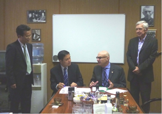 2015年9月29日,胡校长一行访问国立核能研究大学(MEPHI)和俄罗斯科学院基础物理研究所(GPI)。MEPHI第一副校长介绍了学校的发展历程、专业设置、研究领域与合作愿景,胡校长应邀向MEPHI师生作报告,介绍我校的办学历史、人才培养、科学研究和国际化进程。两校领导就建立包括学生交换、合作研究、教师培训、联合教育项目(双学位)和联合实验室等内容进行讨论,双方签署全面合作协议。