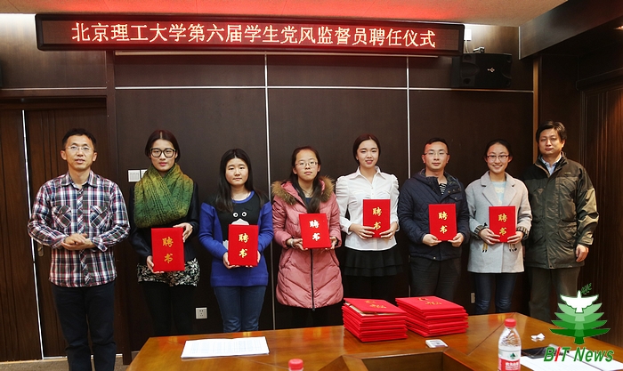 12月9日,学校纪委在良乡校区举行第六届学生党风监督员聘任仪式。校纪委书记杨志宏、校长助理郝志强、纪委副书记魏名山、学工部部长郭彦懿、研工部部长郝洪涛、良乡管理处处长徐承俊、基础教育学院党委书记朱光辉、纪委监察室正处级纪检员杨晖、组织部副部长周波、校团委副书记方蕾等相关部门负责人出席聘任仪式,20名来自各学院的学生党风监督员代表参加了聘任仪式。聘任仪式由纪委副书记魏名山主持。