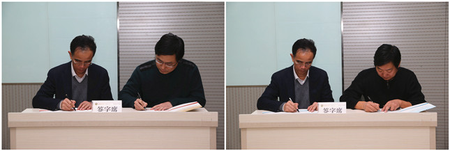 孙逢春代表学校与学院代表计算机学院党委书记蔺伟、设计与艺术学院党委书记郭宏签订了《德赢AC米兰官网2016年就业工作目标责任书》。
