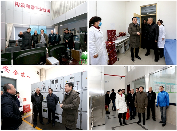 1月31日,校党委书记张炜、副校长李和章、校长助理郝志强前往良乡校区,先后赴校园保安值班室、总配电室、良乡校区学生食堂、学生公寓楼值班室、良乡校区锅炉房、良乡校区监控指挥中心等地方,慰问坚守岗位的工作人员。