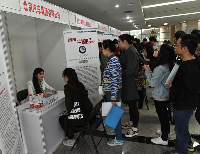 北汽集团作为我校人才输送的重点单位,2015年共接收我校毕业生138人,接收数量名列全国高校首位。本次招聘会是北汽集团2016年春季在全国高校中举办的首场招聘活动,招聘专业涉及车辆工程、机械自动化、热能与动力工程、电子信息工程、软件工程、工商管理、市场营销、经济学等,吸引了近千名校内外毕业生前来参会。在宣讲会上,北汽集团各成员单位宣讲了公司概况、发展前景等内容。宣讲结束后,在体育馆南厅进行了现场招聘。