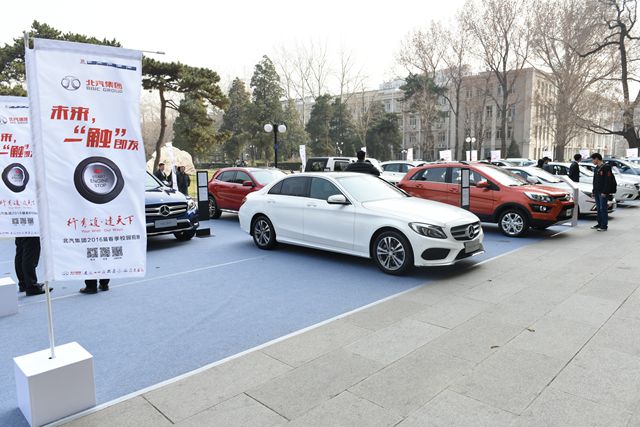 招聘会当天,为加强毕业生们对北汽集团企业文化的了解,北汽集团在中心教学楼前同步举办了车展活动。