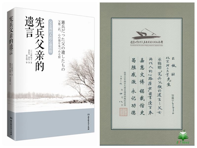 本书作者仓桥绫子女士的父亲大泽雄吉,是一位参与过侵华战争的日本宪兵,在病重之时,拿出一张纸条,要求将纸条上写的自己对中国人民的愧疚与忏悔刻在自己的墓碑上。为此,作者背负着沉重的心理压力,走上了漫长的追溯真相的道路。仓桥女士多次来到中国,探究父亲在战争中所犯下的罪行,替父亲的行为向中国人民道歉谢罪。最终,作者冲破家庭、生活、社会的种种阻力,实现了父亲的遗愿,为父亲立起了“谢罪碑”。作者仓桥女士曾委托东史郎先生将其父亲“谢罪碑”的相片转交给南京大屠杀遇难同胞纪念馆,并参加第15次“悼念南京大屠杀遇难者植树访华团”来到南京植树,为侵略战争赎罪,为中日友好祈福。纪念馆王伟民副馆长在现场展示了当时留存的相关资料。