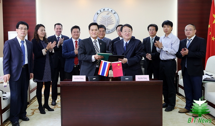 与会人员就两校拟开展的国际合作项目开展了讨论。张炜和Worsak分别代表两校签署了校际合作协议和学生交换协议。会谈后,亚洲理工大学代表团参观了机械与车辆学院激光微纳米制造实验室。院长姜澜教授向Worsak介绍了实验室的研究方向及主要学术成果。