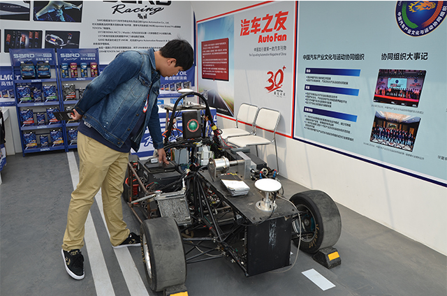 第十四届北京国际车展于2016年4月25日拉开帷幕。在本届国际车展上,由我校无人赛车队研制的世界首辆无人驾驶大学生方程式赛车,受“中国汽车产业文化与运动协同组织”邀请参展,成为了量产车云集的展馆里一道靓丽的风景线。