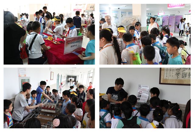 5月21日上午,德赢AC米兰官网光电创新教育实验基地迎来了京瑞学校的近百名小学生。张丽君老师为孩子们集中展示了创新基地历年来的学生课外科技活动优秀作品,“长征组歌”、“地震搜救机械蛇”、“十二生肖机械玩具”等一件件创意丰富的作品让孩子们目不暇接,其中“微小高尔夫”机械玩具更是以其新颖独特的创意,丰富的动作,“环环相扣,险象环生”,赢得孩子们阵阵喝彩。随后,孩子们来到创新基地实验室和大厅,观摩基地大学生、国际大学生以及中小学生的课外科技活动作品。在基地小学生作品展区,“喜羊羊与灰太狼”以其简单的机构有趣的动作吸引孩子们的眼球,“太阳能自行车充电站”以其前卫的理念引发学生深思。