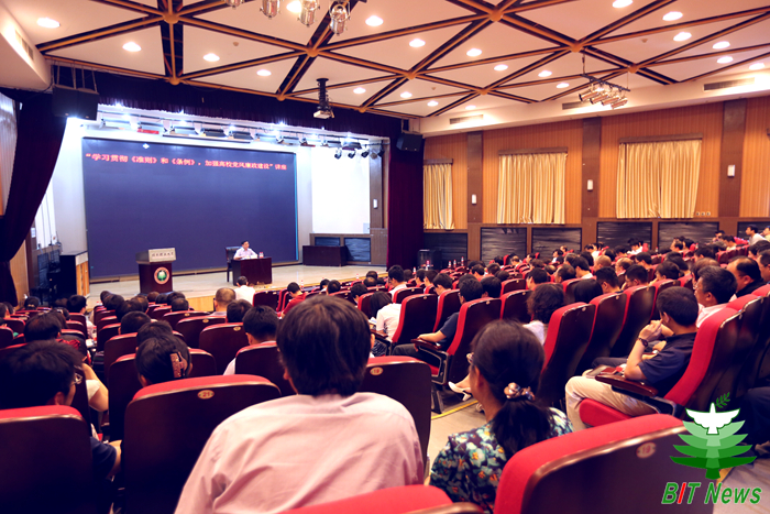 6月17日,学校召开“学习贯彻《准则》和《条例》,加强党风廉政建设讲座”,本次讲座结合学校正在开展的“两学一做”学习教育,是“党内法规学习宣传教育月暨2016年党风廉政宣传教育月”系列活动之一,北京市教育纪工委书记王文生出席并作专题报告,讲座由纪委书记杨志宏主持,全校处级干部参加了讲座。