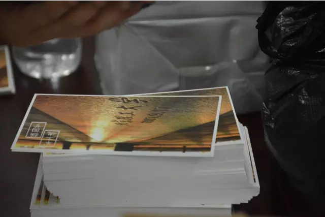 ▲迎新前夕,晚上九点的中关村。志愿者们正在准备明天将要发放给新生的地图和明信片。这样的传统已经持续了有好几年,所有的爱和关怀就好像真的被装进信封,被邮寄过时光的缝隙,在一届届校会人之间传承。