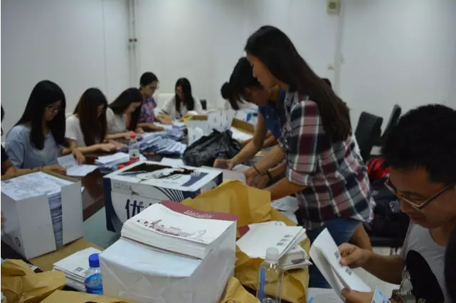 这样的图景就是志愿者迎新前的日常。为了准备好发放给新生的材料,