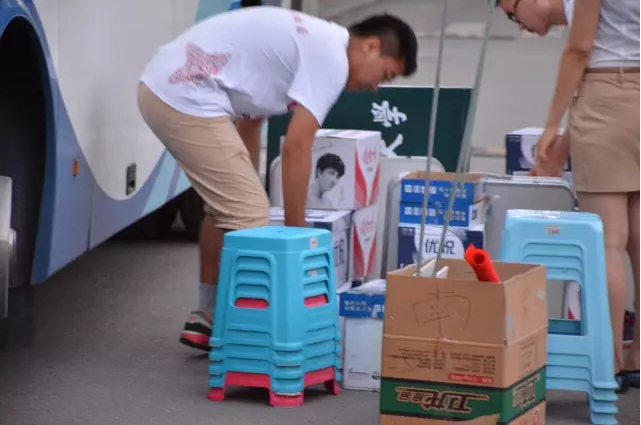 ▲大本营志愿者正在给新生发放前一天晚上装好的小信封,并简单的为他介绍了一下信封里的东西。送完新生的家长们要坐车回到地铁站,我们的志愿者设立了专门的摆渡车候车点,方便新生和家长们有序出行。这里不但要记准班车的终点和时刻、忍受太阳的暴晒,就连坐着休息的时间也很少。