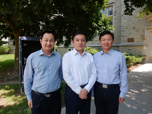 中国驻多伦多领事馆科技参赞沈建磊(右一)、领事吴善略(左一)陪同胡校长访问