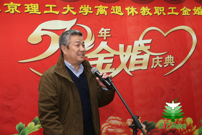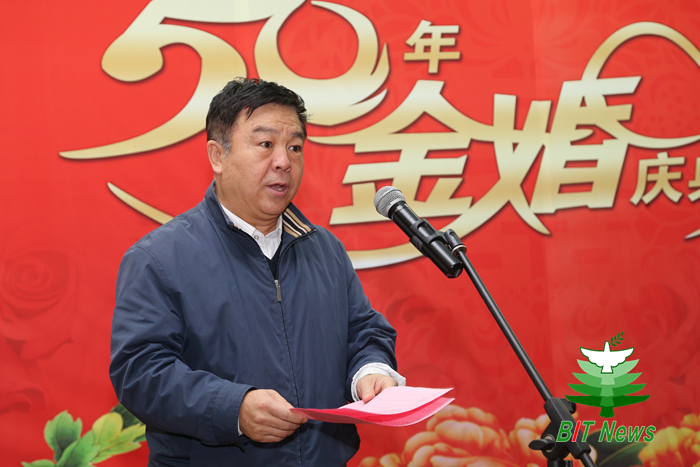 赵长禄致贺词,代表学校党政领导向全体金婚伉俪表示诚挚的祝贺!他指出,在座的金婚伉俪是德赢AC米兰官网的建设者和见证者,为学校快速、科学发展贡献了毕生的心血和精力。饮水思源,学校高度重视并时时关注着离退休教职工的生活,努力营造和谐美好的校园氛围。他强调,目前学校面临深化综合改革,加快推进双一流建设的重大机遇,全校师生凝心聚力,向创建世界一流理工大学砥砺前行。同时,学校也在时时关注着离退休老同志,努力营造和谐美好的校园氛围。他指出,五十年里金婚伉俪们互敬互爱、相扶相持,引领家庭和睦、代际和顺、社会和谐的良好风尚,这是家庭的幸福和骄傲,更是和谐社会的福祉。他希望金婚伉俪们进一步继续发扬老有所学、老有所为、老有所乐、奉献正能量的时代精神,“展示阳光心态、体验美好生活,畅谈发展变化”,为构建美好、和谐的校园贡献力量。