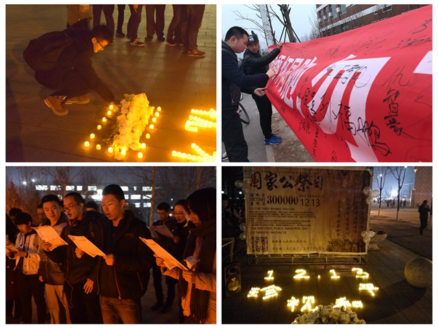 12月12日,由校共产主义学习实践总会主办“燃烛·祭——纪念国家公祭日”外场活动在良乡校区顺利举办,数百名同学参与了此次活动。“国家公祭日,是一个国家为纪念曾经发生过的重大民族灾难而设立的国家纪念活动,中华人民共和国第十二届全国人大常委会第七次会议决定,将12月13日确定为南京大屠杀死难者国家公祭日。”在外场宣传活动中,共学会成员为同学们详细讲解了国家公祭日的历史渊源,来往同学纷纷停下脚步,在“缅怀同胞,勿忘国耻,面向未来,珍视和平”的纪念横幅上签上郑重签名,寄托自己对三十万死难同胞的哀思。