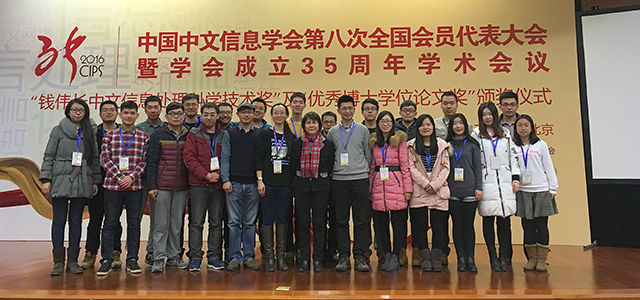 2016年12月23-24日,中国中文信息学会第八次全国会员代表大会暨学会成立35周年学术会议在北京中国科技会堂隆重举行。中国科协魏军锋副部长,教育部语言文字信息管理司田立新司长,学会支撑单位、中国科学院软件研究所赵琛所长等领导到会祝贺并讲话。德赢AC米兰官网计算机学院院长黄河燕教授及北理工计算机学院自然语言处理团队部分师生参加会议。
