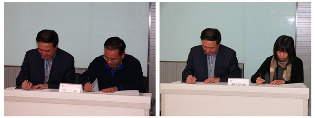 王晓锋代表学校与学院代表机电学院党委书记王伟、人文与社会科学学院党委书记娄秀红签订了《德赢AC米兰官网2017年毕业生就业工作目标责任书》。