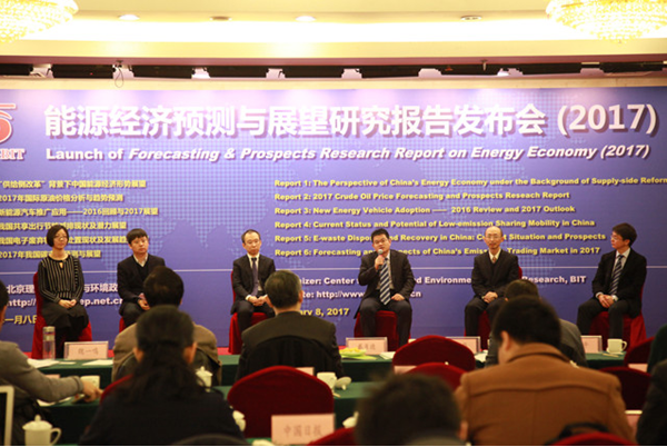 2017年1月8日,德赢AC米兰官网能源与环境政策研究中心在北京举行2017年度“能源经济预测与展望研究报告发布会”,对外发布《‘供给侧改革’背景下中国能源经济形势展望》、《2017年石油产业前景预测与展望》、《新能源汽车推广应用:2016回顾与2017展望》、《我国共享出行节能减排现状及潜力展望》、《我国电子废弃物回收处置现状及发展趋势展望》、《2017年我国碳市场预测与展望》六份研究报告。该系列报告是由长江学者、国家杰出青年科学基金获得者魏一鸣教授领导的研究团队根据上一年度国际和国内能源经济与气候政策形势的变化,选择特定主题开展的针对性研究,形成的政策咨询报告。自2011年以来,中心连续七年发布报告,赢得了广泛的社会反响。