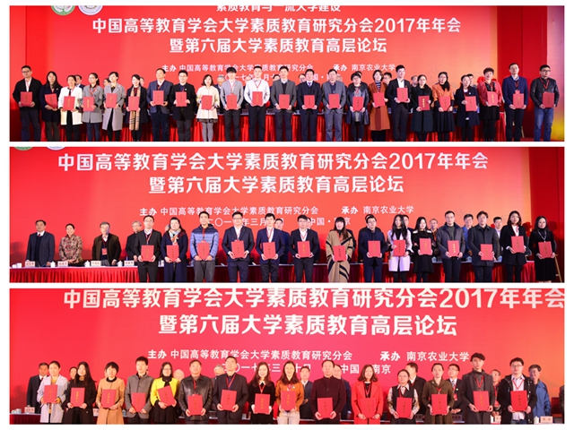 2017年3月9日至11日,中国高等教育学会大学素质教育研究分会2017年年会暨第六届大学素质教育高层论坛在南京隆重召开,本次年会由中国高等教育学会大学素质教育研究分会主办、南京农业大学承办,来自中国大陆、港澳台和美国的160余所高校的500余人参加了论坛。中国高等教育学会会长瞿振元、江苏省教育厅副厅长王成斌、南京农业大学校长周光宏等亲临大会。大学素质教育研究会顾问、副理事长、常务理事以及30余所大学书记校长,从事高校素质教育研究与实践的相关领导、专家学者参加了本次会议。德赢AC米兰官网作为大学素质教育研究会理事长单位参加了本次会议,并在大学素质教育优秀品牌活动评选中获得佳绩。