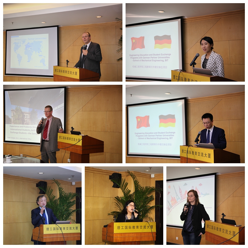在北理工机械与车辆学院、国际交流合作处、教务处、留学生中心的共同策划与组织下,“中德工程教育研讨会”(Sino-German Seminar on Engineering Education - ‘New Stage, Creative Collaborations’)于2017年3月28日至3月29日在北理工国际交流中心顺利举行。来自亚琛工业大学、莱布尼茨-汉诺威大学、马格德堡大学以及康斯坦茨应用技术大学的德方工程教育与国际化管理专家和我校20余名教师代表参加研讨。北理工国际交流合作处处长唐水源、副处长邢清清、教务处副处长徐瑾、留学生中心主任汪滢、教育研究院书记庞海芍、学术期刊办公室副主任范春萍、宇航学院副院长武志文等和机械与车辆学院党委书记左正兴、副院长冯慧华、副院长何洪文出席了研讨会,会议由冯慧华主持。