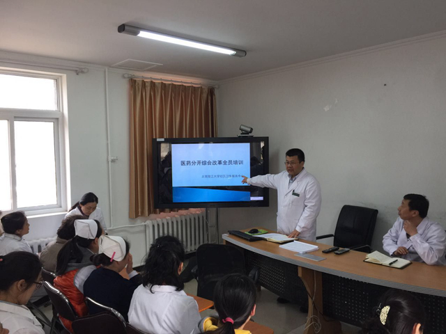 校医院先后多次召开院务会、科室主任会和全体医务人员大会,认真学习、解读北京市医药分开综合改革实施方案和学校医药分开综合改革实施方案,对可能产生的问题和矛盾制定了应急工作预案,并密切关注北京市各项实施细则的陆续出台,及时调整工作方案。中关村和良乡两校区从医院信息系统更新维护,到药品遴选、采购、调配,重点人员及重点专项培训等一系列准备工作扎实、精细、有序,全力保证北理工医药分开综合改革的顺利实施。
