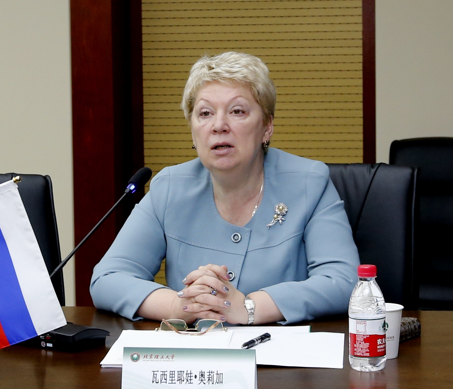 瓦西里耶娃对北理工的热情接待表示衷心感谢。她简要介绍了俄罗斯高等院校的设置情况,肯定了北理工在国防科技、工程等领域的学科专业优势。瓦西里耶娃表示,北理工与莫斯科国立罗蒙诺索夫大学合作举办的中俄大学项目是“一带一路”倡议下的重要项目,俄罗斯教育科学部将大力支持中俄大学的建设,包括为俄国学生提供奖学金支持其赴中俄大学求学等,促使中俄大学成为中俄两国战略合作与人文交流的平台;此外,俄罗斯教育科学部鼓励中国学生赴俄留学,共同开展国际合作项目,加深中俄人文与教育交流合作。