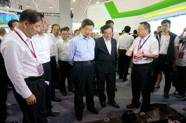 李源潮等在中国科协年会先进材料展览会上参观北理工科研成果