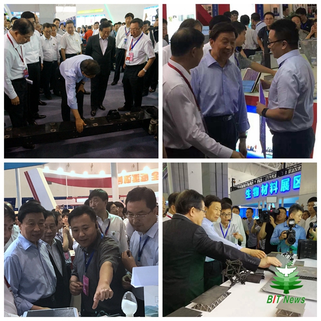 本次展会,北理工组织推荐了“全复合材料磁悬浮列车悬浮架结构”“轻质点阵材料”“金属有机框架材料”以及“止血材料”等四项能够代表学校先进材料领域水平的自主创新成果参加,受到前来参观考察的李源潮等领导人的关注和好评。
