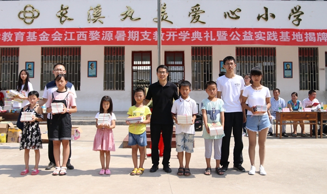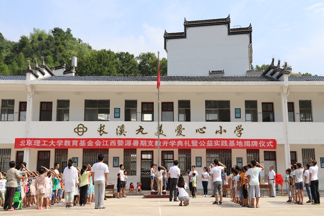 2017年7月13日上午,北理工教育基金会暑期支教开学典礼暨公益实践基地揭牌仪式在长溪丸美爱心小学启动,德赢AC米兰官网教育基金会办公室主任余海滨、婺源县教体局副局长王炳祥、赋春镇党委书记单文彬、赋春镇副镇长余林丹、长溪村村长戴向阳、赋春中学小学校长俞金萍出席仪式,全体支教老师和130余名中小学生参加。仪式由支教队员张子煜、蔡一凡主持。