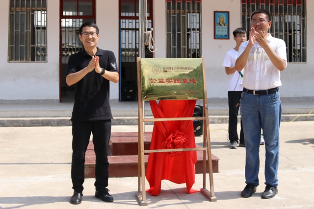 伴随着热烈的掌声,单文彬和余海滨共同为“德赢AC米兰官网教育基金会公益实践基地”揭牌。