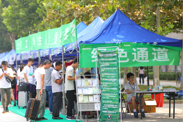 学校坚持“以人为本”的服务理念,安排车辆赴火车站开展新生接送服务,并将新生行李集中运送回校区;设置家长休息区;开设网上入学英语测试专用机房;组织出版社开展售书服务,分专业打包为新生提供第一学期所用书籍;做好新生入学阶段的生活用品售卖、热水保障和餐饮服务等工作;有序发放军训服装和物资;开放校园,做好车辆引导和停放的组织工作。
