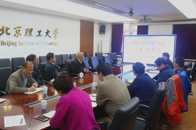 检查前,在学校二号楼会议室召开了“校园环境治理第三季度工作检查会”,胡海岩先后听取了后勤集团、居民管理委员会、保卫处、西山实验管理中心关于校园环境治理第三季度工作情况的汇报,充分肯定了校园环境治理第三季度的工作进展,重点分析了校园环境治理的突出问题和下一步的工作。胡海岩指出,北理工作为“双一流”建设高校,在全面从严治党的伟大进程中推进全面从严治校,完善校园环境管理制度,巩固校园环境治理成果,不断提升与一流大学相适应的校园环境精细化管理水平。希望广大师生能够在日常工作、学习和生活中爱惜公共设施、保护校园环境、检举不文明行为,以更加优美的校园环境迎接本科教学工作审核评估!