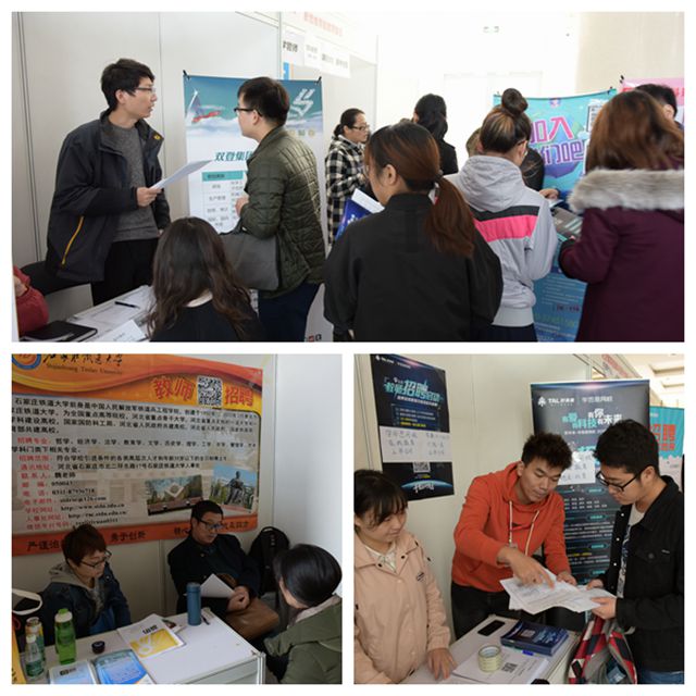 2017年10月31日下午,我校在良乡校区工业生态楼一层大厅举办了文科及基础学科专场招聘会。石家庄铁道大学、兴业银行股份有限公司、双登集团股份有限公司、北京迪文科技有限公司等17家用人单位参加了本次招聘会。