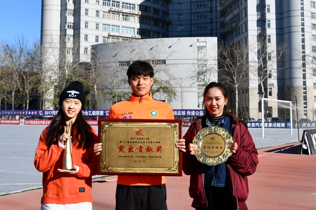 11月29日,中华人民共和国第十三届学生运动会北京代表团表彰大会在清华大学举行。北京市教委、北京市体育局、共青团北京市委和北京市大学生体育协会相关领导出席。在表彰会上,北京市代表团授予我校 “突出贡献奖”,授予我校足球队 “最佳拼搏奖”。