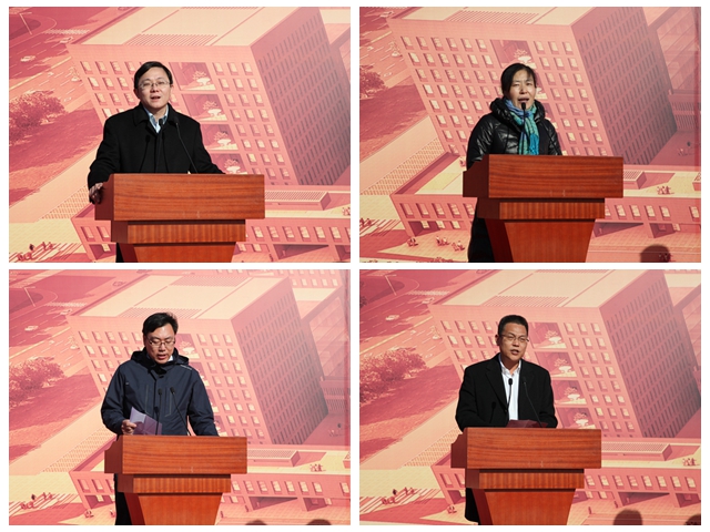 良乡高教园区管委会常务副主任路鹏,中国建筑设计院有限公司项目总负责人单立欣,北京中景恒基工程管理有限公司总经理肖传涛,中国建筑第二工程局有限公司副局长程同普先后致辞。