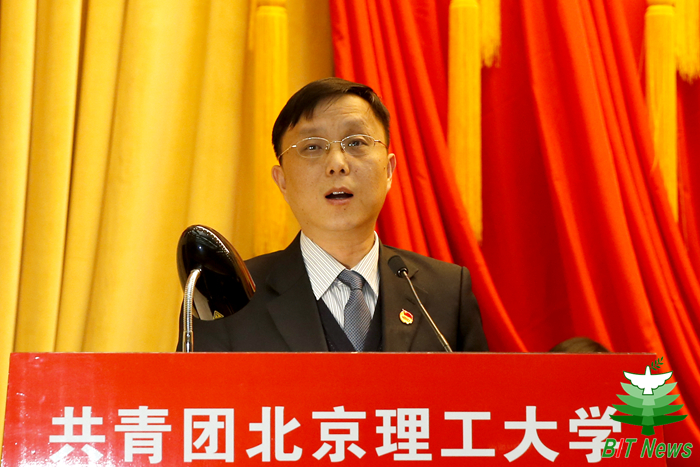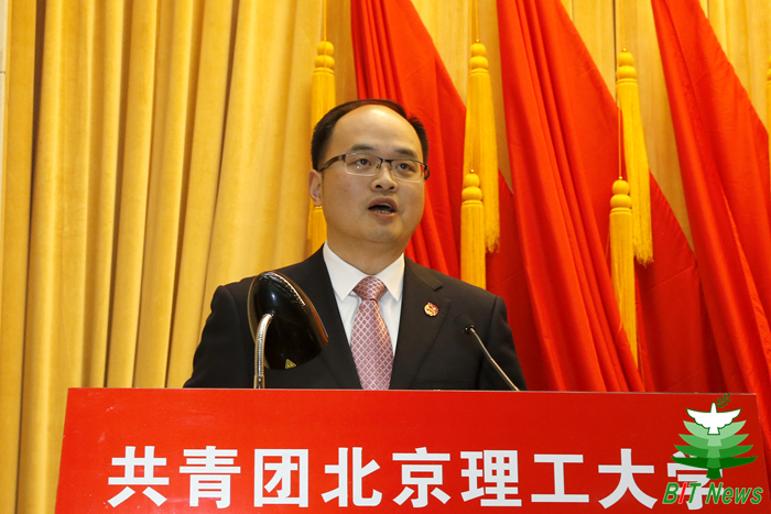 熊卓代表共青团北京市委讲话。他表示,近年来,德赢AC米兰官网各级共青团组织在学校党委的坚强领导下,立足学校教育教学工作和首都经济社会发展大局,理想信念教育取得显著成效,组织建设活力不断增强,校园文化建设繁荣发展,成长服务领域不断拓宽,品牌活动影响力不断提高,为青年学生的成长成才搭建了广阔舞台,为首都高校共青团事业发展做出了积极的贡献。他代表共青团北京市委对北理工各级共青团组织和团员青年提出了三点希望:一是认真学习贯彻党的十九大精神,切实加强对广大团员青年的思想政治引领;二是坚持以围绕中心、服务大局为主线,积极为建设一流的和谐宜居之都做贡献;三是顺应时代发展和青年工作新特点,进一步推进共青团改革。
