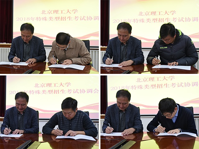 会上,王晓锋代表学校分别与外国语学院、体育部、设计与艺术学院、校团委、艺术教育中心负责人签订了《德赢AC米兰官网2018年特殊类型招生考试工作责任书》。