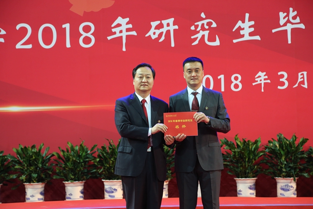 校党委书记赵长禄,校长、中国工程院院士张军,副校长李和章,纪委书记杨志宏,副校长、中国工程院院士陈杰,副校长、中国科学院院士方岱宁,校长助理汪本聪、杨亚政、龙腾以及学校各部门负责人,各学院院长、书记和学院相关领导,教师代表、校友代表、部分学生家长出席了典礼。1740名2018年春季毕业硕士研究生、博士研究生参加了毕业典礼并接受学位授予。典礼由副校长王晓锋主持。