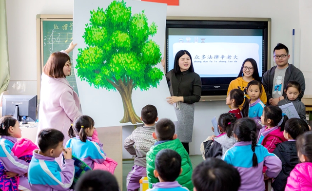 活动伊始,普法志愿者们通过生动形象的比喻向小朋友们介绍有关两会的知识,并通过情景剧“众多法律争老大”来向小朋友们展示宪法、民法、刑法等法律的概念与基本内容,并让小朋友们来评理,选出他们心中最厉害最权威的法律。小朋友们争相说出自己的答案,答案各异,但大部分小朋友都认为宪法最厉害。当然,三位志愿者还是面对小朋友详细的讲解了为何宪法为根本大法,并且通过精心准备的道具——“法律树”来告诉小朋友们宪法如同树根,保护并滋养着其他法律。