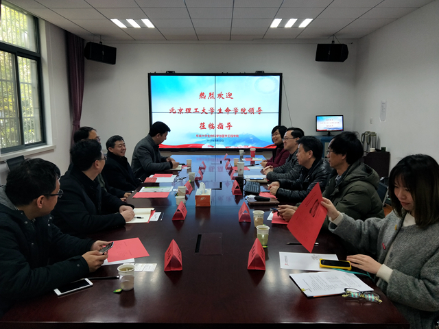 上海交通大学生物医学工程学院党委书记季波等接待了调研组,双方就学院党的建设、研究生培养方案、学生工作等进行了深入交流。座谈结束后,调研组与被保送到上海交大读博的北理工生命学子展开座谈。刘存福关切同学们的学习生活近况,同时向校友们介绍了学院近年来的发展,鼓励他们专心科研,潜心学术,常回母校看看,欢迎大家助力母校的“双一流”建设。