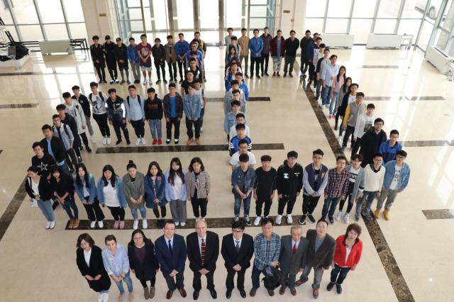 双方与会人员就教师互访、学生交换、科研合作、合作办学、20周年庆典等一系列事项进行了具体而深入的研讨。来访外宾与部分电子工程中英班学生和老师在信息科学实验楼一层大厅集体合影留念。