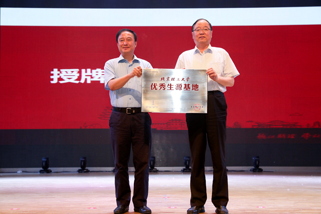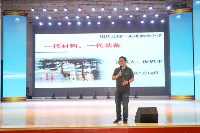 北理工材料学院院长庞思平为衡水中学学子作《一代材料,一代装备》专题报告,展现了北理工的军工特色和材料学科对国防事业的发展作出的重大贡献,引起了十数次的热烈掌声,激发了学子们强烈的家国情怀和报国热情。