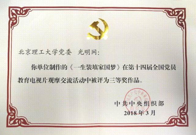 近日,中共中央组织部发布《第十四届全国党员教育电视片观摩交流活动入选作品通报》,北理工推荐作品《一生装填中国梦》在第十四届全国党员教育电视片观摩交流活动中获三等奖,是为数不多由高校推荐的获奖作品之一。